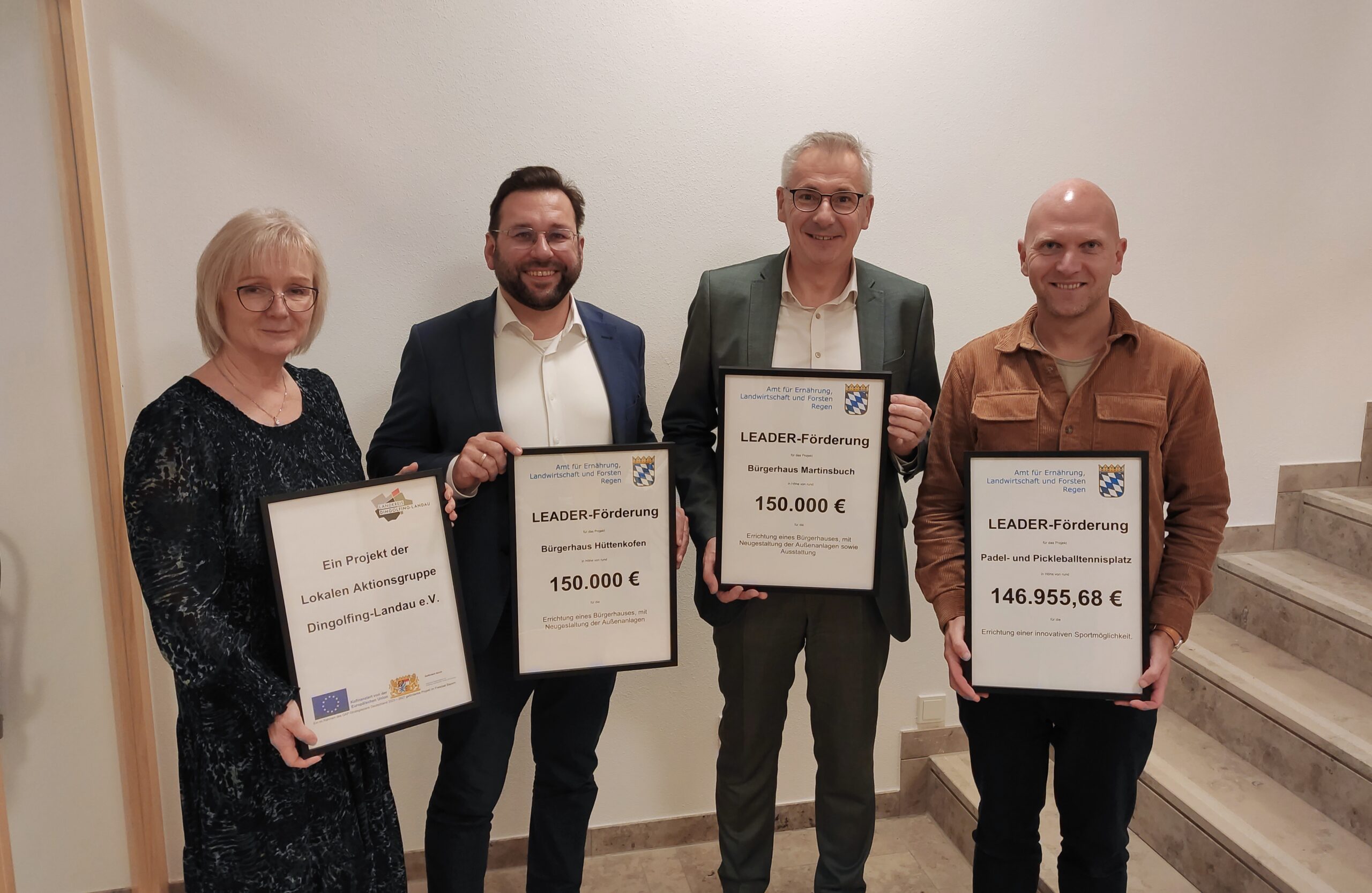 Ein starkes Zeichen für die Entwicklung des ländlichen Raums: Landrat Werner Bumeder, Vorsitzender der Lokalen Aktionsgruppe (LAG) Dingolfing-Landau e.V., überreichte kürzlich drei LEADER-Förderbescheide an engagierte Projektträger in Hüttenkofen, Martinsbuch und Dingolfing. Insgesamt fließen über 446.000 Euro Fördermittel in zukunftsweisende Vorhaben, die das gesellschaftliche Miteinander und die sportliche Infrastruktur in der Region stärken.