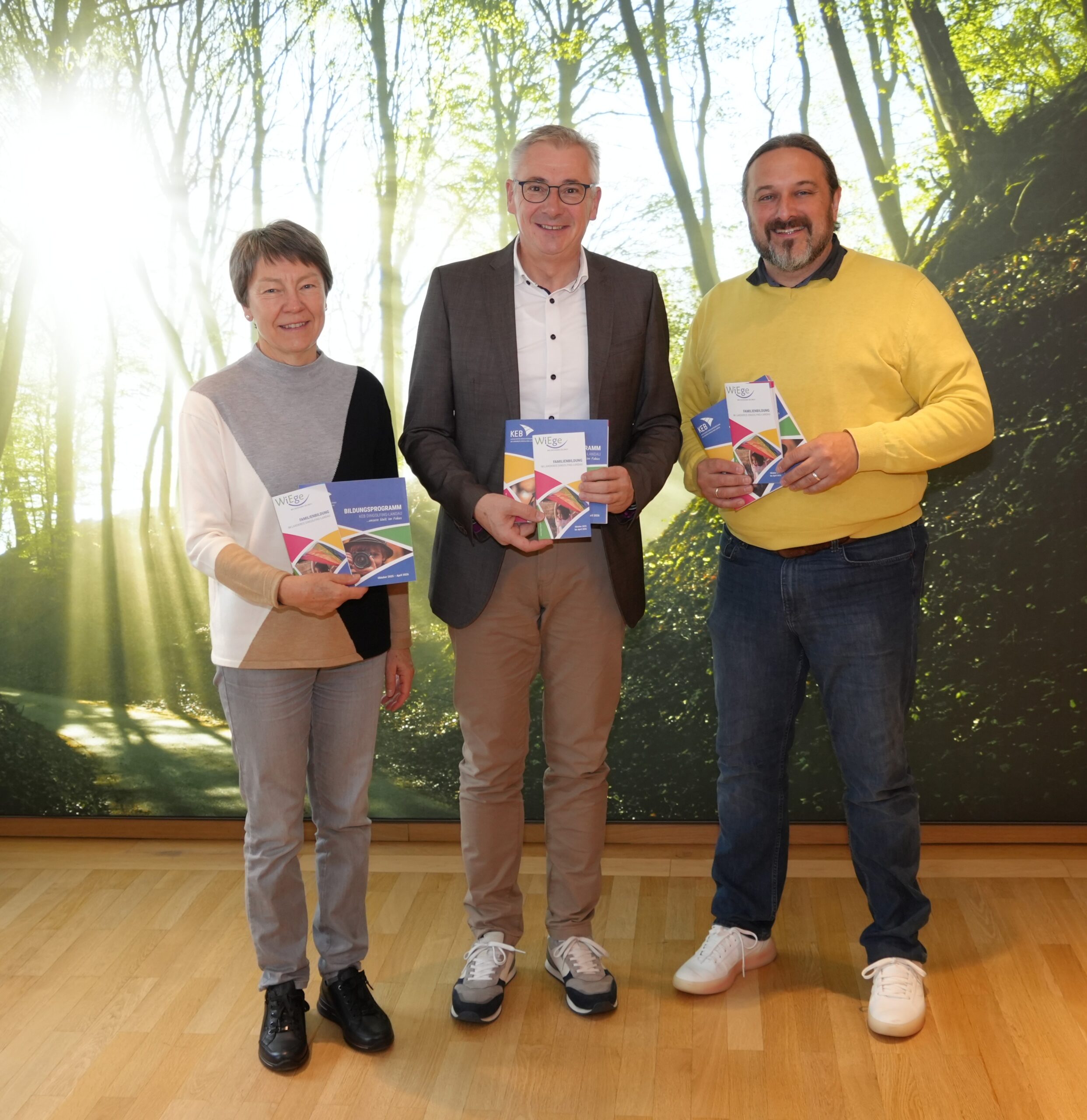 Die Katholische Erwachsenenbildung (KEB) Dingolfing-Landau hat ihr neues Familienbildungsprogramm „WiEge – Wie Erziehung gelingt“ für die Monate Oktober 2025 bis April 2026 präsentiert. Landrat Werner Bumeder informierte sich persönlich bei KEB-Vorsitzender Maria Höschl und Bildungsreferent Stefan Ramoser über die neuen Angebote.