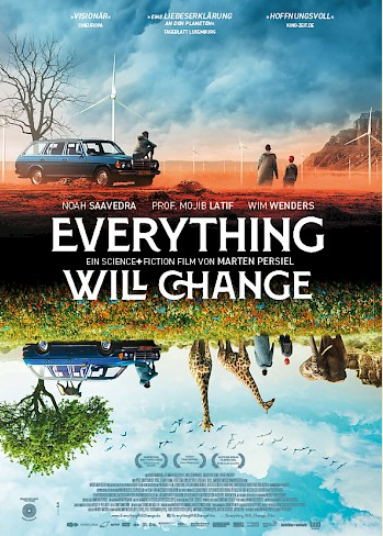EVERYTHING WILL CHANGE erzählt vom abenteuerlichen Road-Trip dreier Freunde, BEN, FINI und CHERRY, die im Jahr 2054 eine sterile, betonierte Welt bewohnen. Als sie erfahren, dass ihr Planet einst von reicher, bunter Schönheit geprägt war, machen sie sich auf eine Reise, um Antworten auf ihre immer größer werdenden Fragen zu suchen: “Was ist Giraffe? Und warum sind die Tiere verschwunden, die es mal gab?” In einem geheimnisvollen Schloss treffen die Freunde auf alternde Wissenschaftler*innen und weise Poeten, die Daten und Erinnerungen zum 6. Artensterben in ihrem Archiv sammeln. Die Suche führt in die 2020er Jahre – der letzten, verpassten Chance des Planeten. Die Drei sind fassungslos und hecken einen mutigen Plan aus. Doch ihr Versuch, die Menschheit wach zu rütteln und das Geschehene ungeschehen zu machen, scheitert kläglich. Enttäuscht erkennen sie, dass es in ihrer Welt nichts mehr zu retten gibt. Schließlich folgen sie den rätselhaften Spuren, die ihnen ein uralter Antiquitätenhändler gegeben hatte. So fassen die Freunde einen letzten, waghalsigen Entschluss, der alles ändern wird.” (Text: farbfilm verleih GmbH)